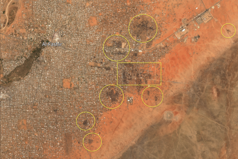 أظهرت صور بالأقمار الصناعية مؤشرات على مقابر جماعية وأنشطة تخلص من الجثث في مدينة الفاشر بشمال إقليم دارفور في غرب السودان، بعد سيطرة قوات “الدعم السريع” عليها، بحسب مختبر البحوث الإنسانية في جامعة ييل الأميركية.