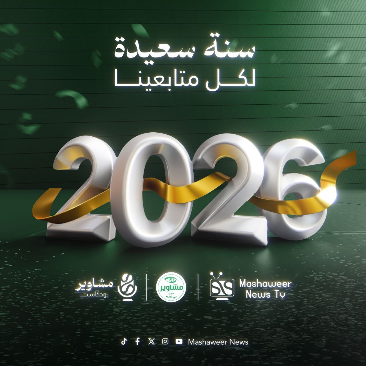 بمناسبة حلول عام 2026، نتقدم بأسمى آيات التهاني والتبريكات لجميع متابعينا الأعزاء، متمنين لكم عاماً مليئاً بالسعادة والازدهار، وكل عام وأنتم بخير.