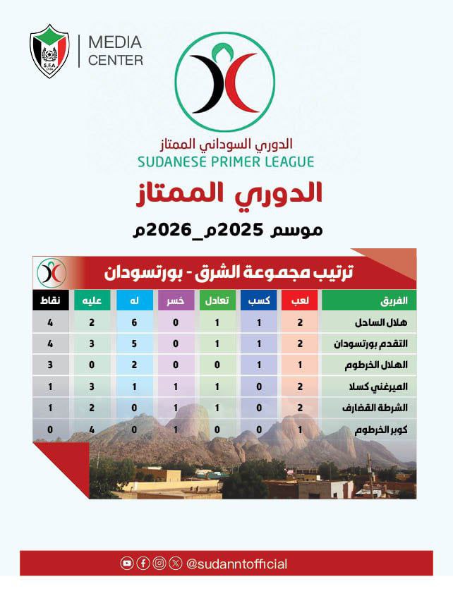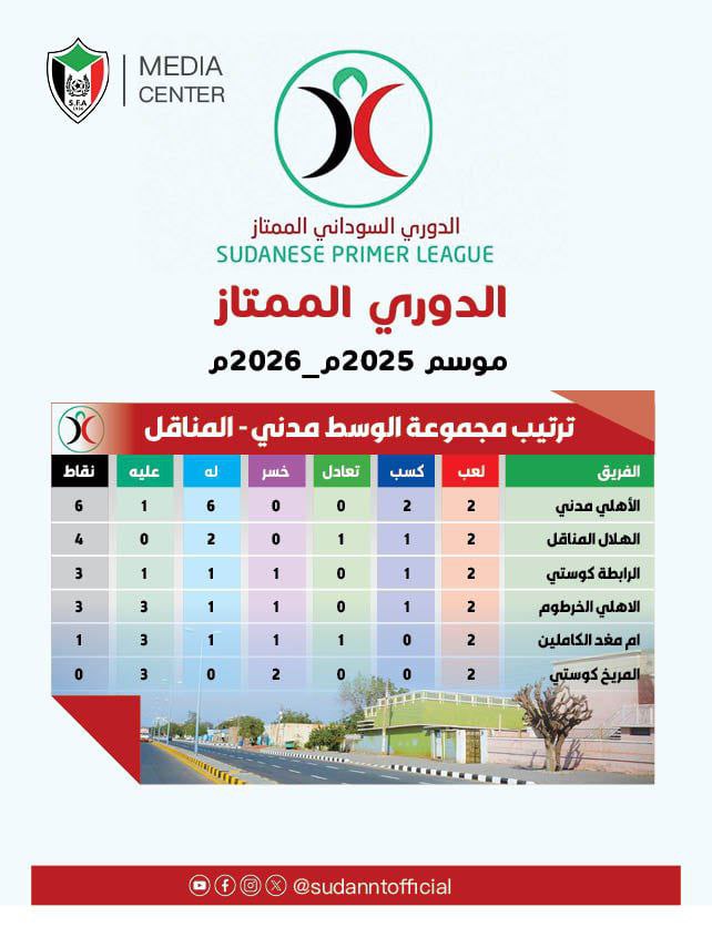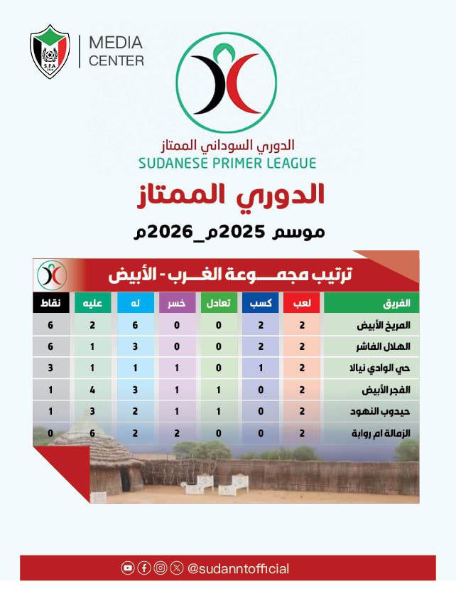 حصاد الأسبوع الثاني للدوري السوداني الممتاز 2025/2026
