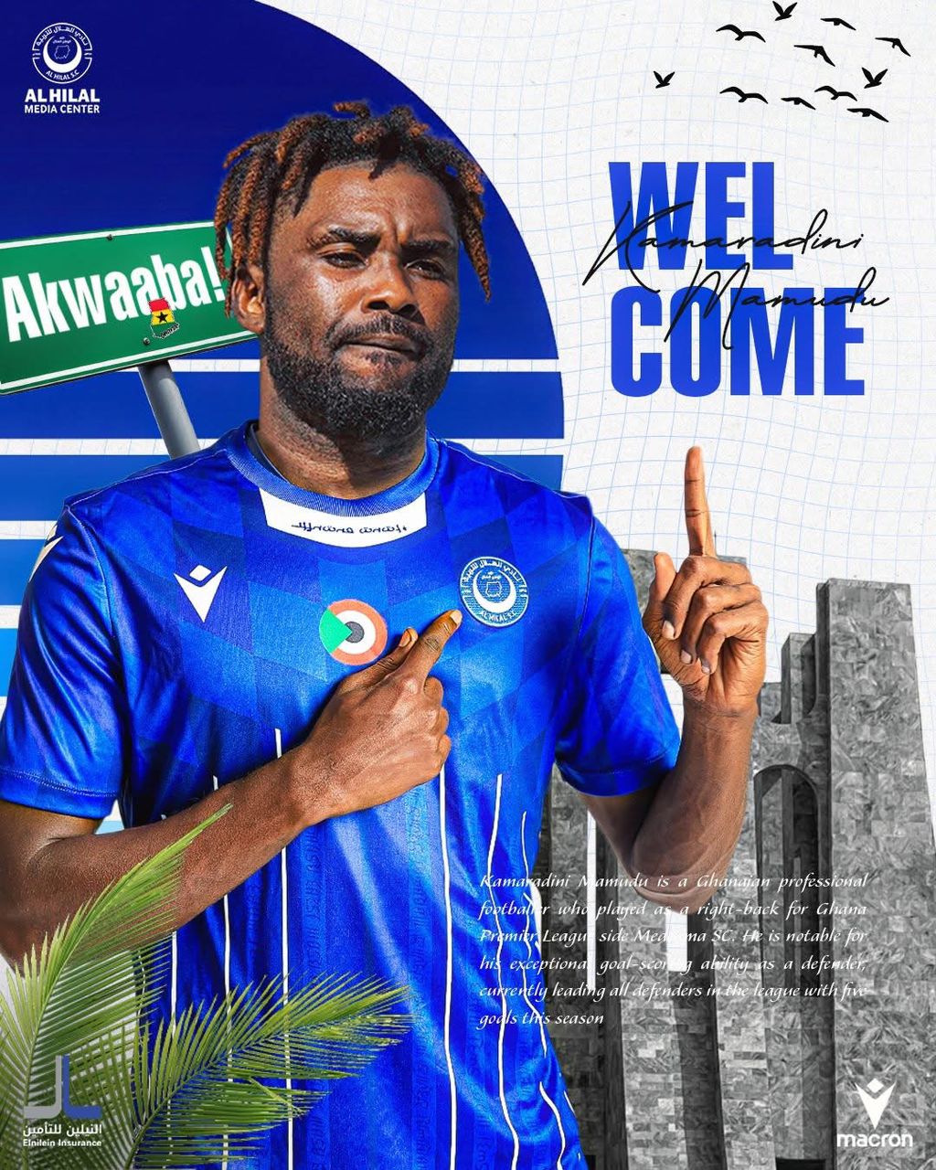 أعلن نادي الهلال، عن التعاقد مع لاعب منتخب غانا، مامودو قمر ديني، بعقد يمتد لثلاثة أعوام ونصف، قادماً من نادي “ميدياما” الغاني.