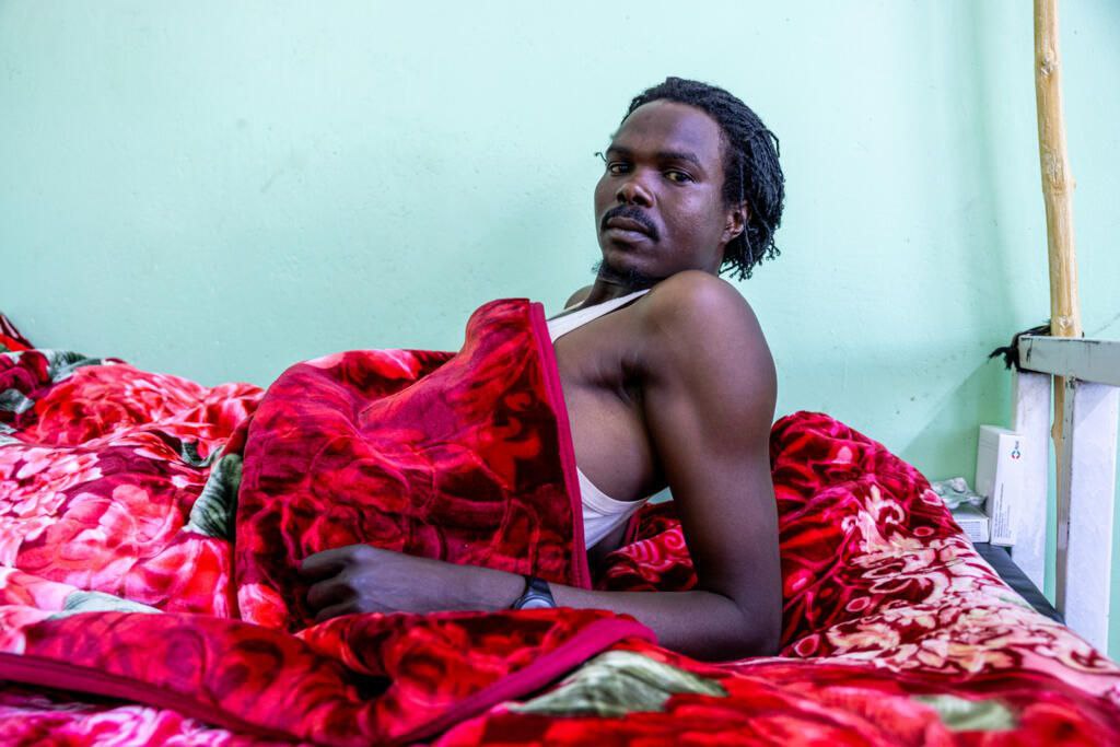 ويقول الرجل البالغ 33 سنة بصوت متقطع، “تعرضت لهجوم بطائرة مسيرة قرب أم بارو في السودان قبل ثلاثة أيام”.