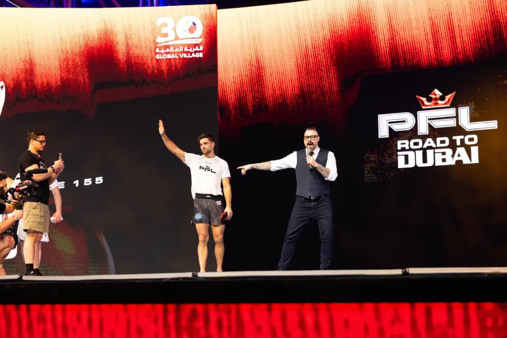 وأقيمت الفعالية على المسرح الرئيسي في القرية العالمية، حيث أتيحت للزوار فرصة متابعة جانب من استعدادات المقاتلين عن قرب، والتعرّف على أجواء ما قبل النزال، إلى جانب التقاط الصور التذكارية، في تجربة تفاعلية عكست الزخم المصاحب للبطولة.