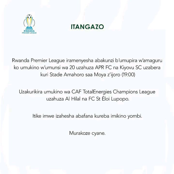 وتقرر إقامة (يوم كروي استثنائي) في ملعب أماهورو بكيغالي يوم السبت، لدمج مباراة الهلال الأفريقية مع مباراة الجيش في الدوري لضمان حشد جماهيري كبير.