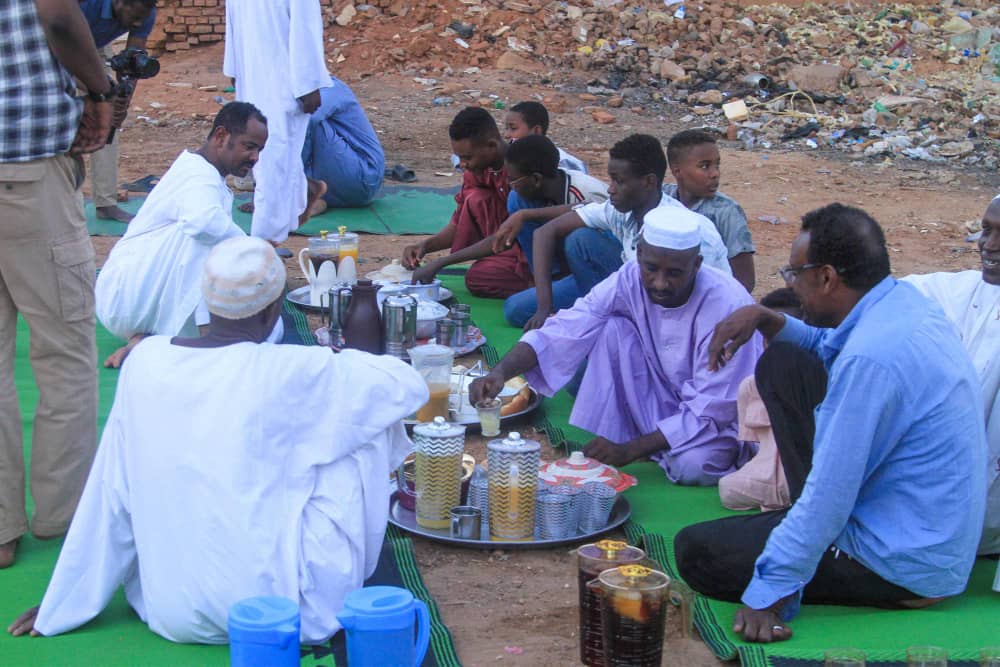 في حي الحتانة داخل أم درمان على ضفة النيل المقابلة لمدينة الخرطوم، افترش حسن بشير وجيرانه بساطاً وضعوا عليه أطباقاً من الطعام عند غروب الشمس، ليتشاركوا أول إفطار جماعي في شهر رمضان المبارك منذ بدء الحرب قبل نحو 3 سنوات.