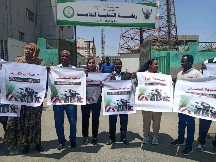 نفذت مجموعة من الصحافيين السودانيين وقفة احتجاجية في مدينة بورتسودان بولاية البحر الأحمر أمام رئاسة النيابة العامة بالولاية للتعبير عن رفضهم للإجراءات غير القانونية المتبعة بحق الصحافيين، وذلك بعد تصاعد عمليات القبض والتنكيل بالصحافيين خلال الأيام الماضية.