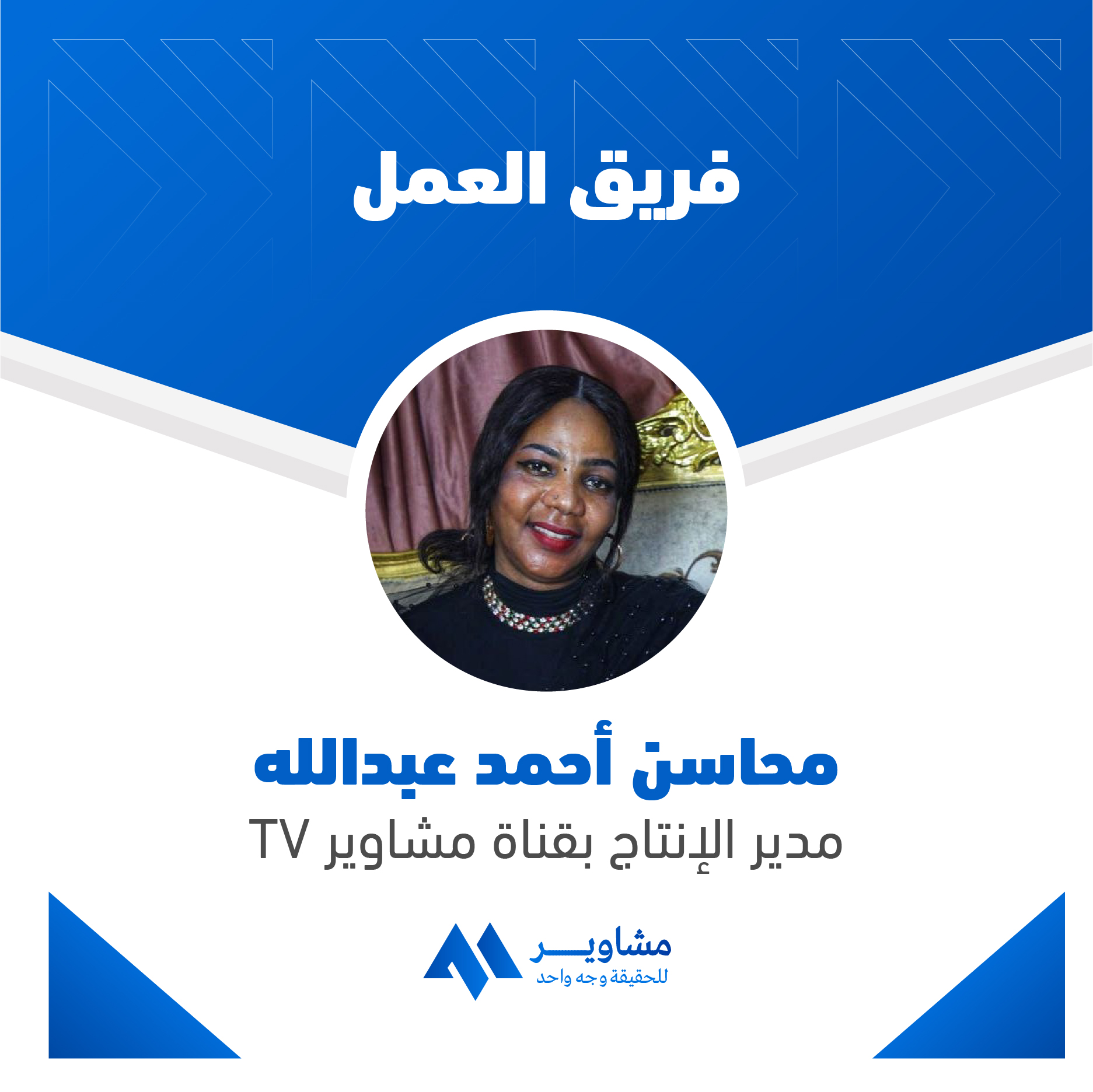 محاسن أحمد عبدالله – مدير الإنتاج بقناة مشاوير TV.
