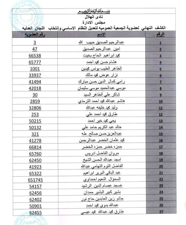 من جانبها، دعت إدارة نادي الهلال كافة الأعضاء الواردة أسماؤهم في الكشف النهائي للالتزام بالضوابط التنظيمية والحضور في الزمان والمكان المحددين، للمساهمة في رسم خارطة الطريق القانونية والإدارية للنادي خلال المرحلة المقبلة.