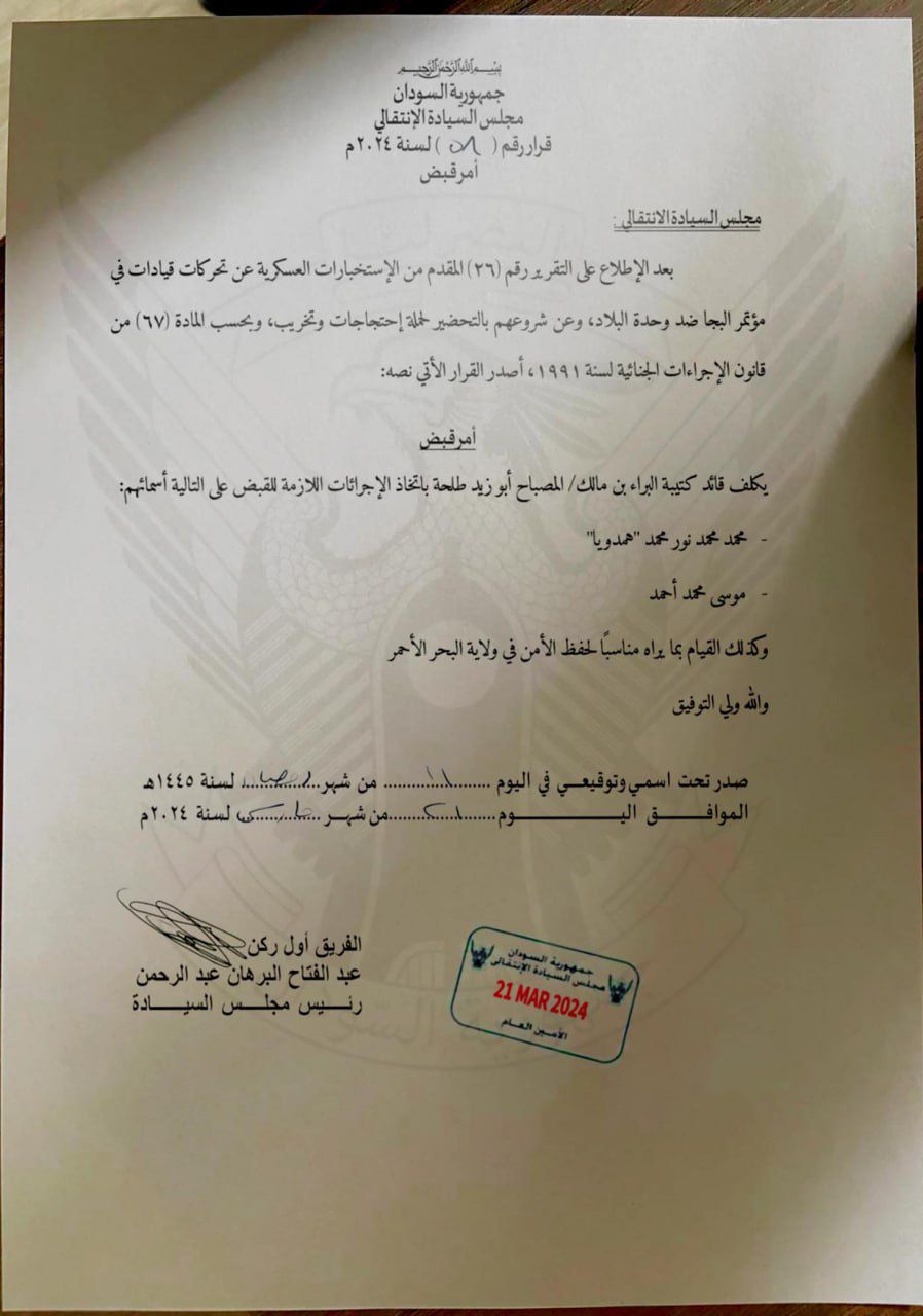 أصدر الاستاذ بشير مرسال حسب الله والي نيالا المكلف اليوم (الخميس) قرار رقم (6) لسنة 2024 بتشكيل لجنة الطوارئ للشؤون الإنسانية بالولاية برعاية عثمان احمد شرف الدين مديرًا تنفيذيًا والسيد مفوض العون الانساني مقررًا وعضوية ثمانية آخرين.